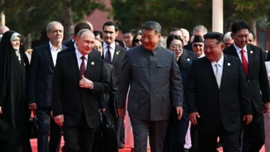 كيم وبوتين يرافقان جينبينغ على السجادة الحمراء في ميدان تيان آن من