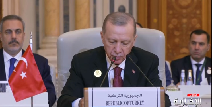 وبحسب المجموعة الدولية لوكالة أنباء فارس، ألقى الرئيس التركي رجب طيب أردوغان كلمة ظهر اليوم (السبت) في اللقاء التضامني للدول العربية والإسلامية مع الشعب الفلسطيني في الرياض.