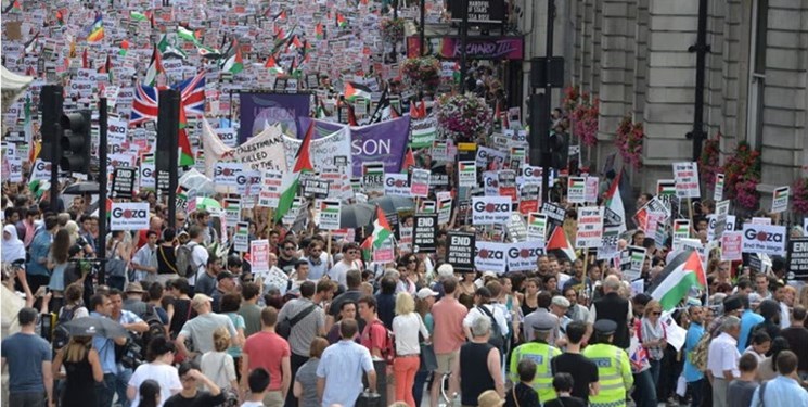 مظاهرات حاشدة للشعب في لندن ضد النظام الصهيوني + فيلم