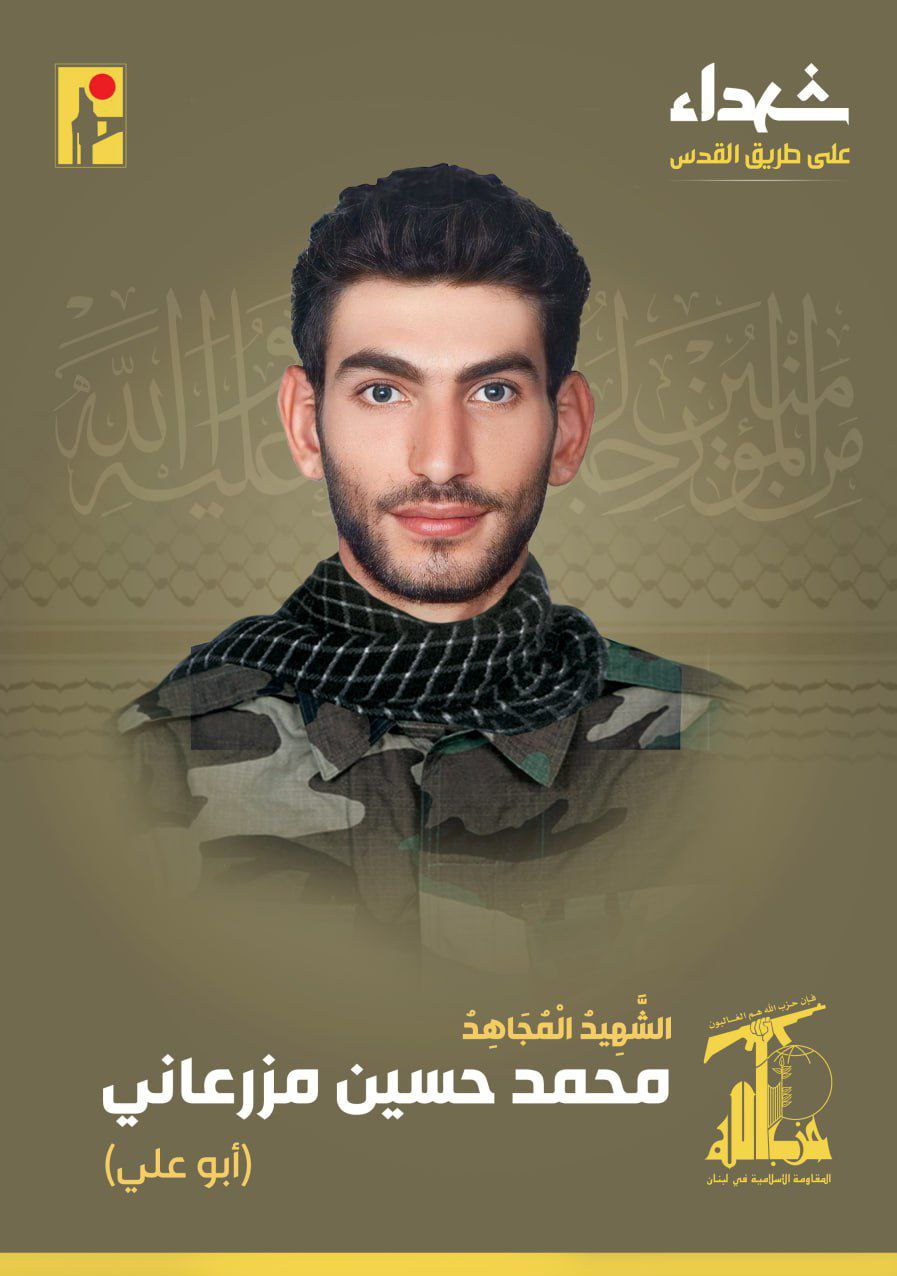المقاومة الإسلامية اللبنانية، وأعلنت أثناء تعازيها، أن “محمد حسين مزرعاني” من سكان منطقة “حولا” جنوب لبنان، استشهد أثناء أداء واجب الجهاد في طريق القدس.