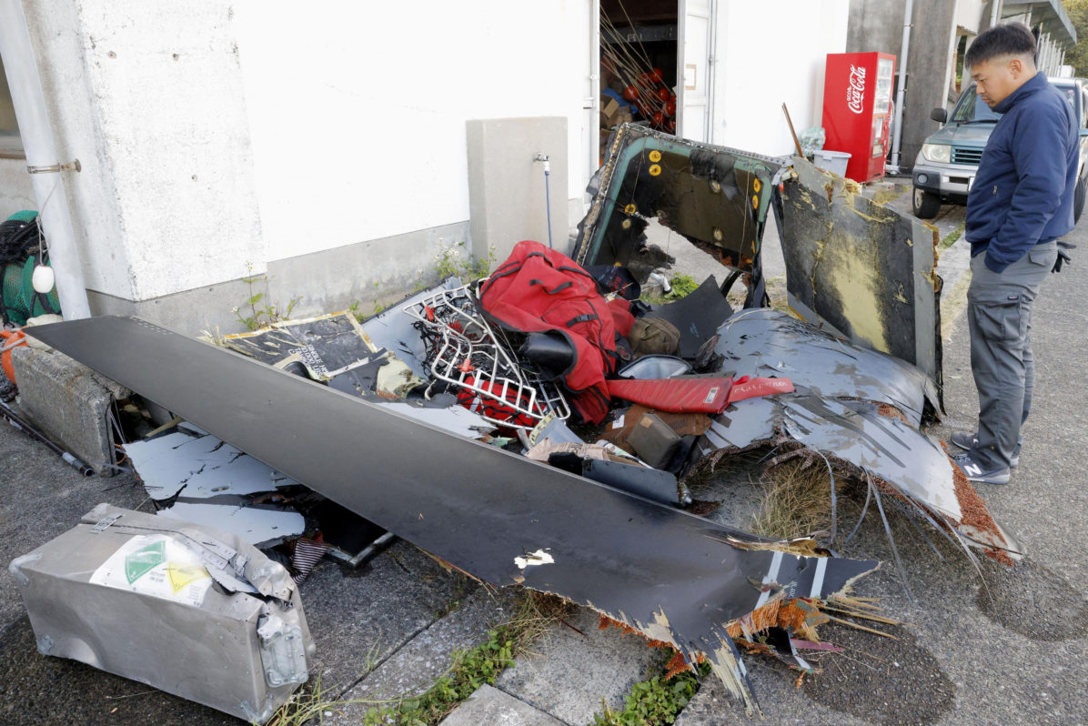 وقال أحد سكان ياكوشيما إنه رأى الطائرة مقلوبة وأحد محركاتها يحترق.