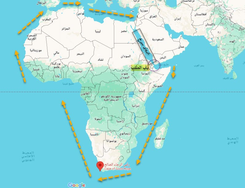 المسار الذي يفرضه رأس الرجاء الصالح بدلاً من باب المندب