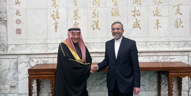 ناقش كبار المسؤولين في إيران والمملكة العربية السعودية في اجتماع في بكين ضرورة وقف هجمات النظام الصهيوني على غزة في أقرب وقت ممكن وضرورة تقديم المساعدة الفورية للشعب المضطهد وشدد على فلسطين.