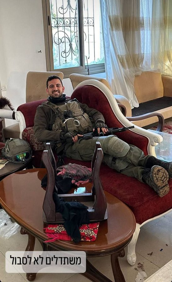 الملازم إلكانا نيولاندر هو ضابط آخر نشر صورة مماثلة الأسبوع الماضي لنفسه وهو مستلقي على أريكة مواطن فلسطيني يرتدي الزي العسكري والحذاء.