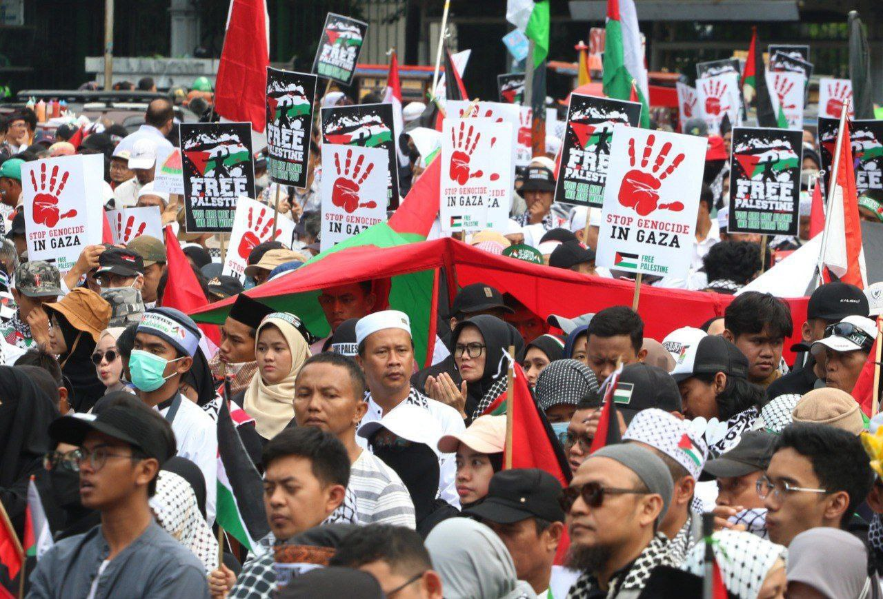 خرج الشعب الإندونيسي يوم السبت الماضي إلى الشوارع دعماً لشعب غزة وإدانة لجرائم النظام الصهيوني وطالبوا بإنهاء الحرب. وفي مظاهرة الأسبوع الماضي، ردد أهالي ديبوكا في إندونيسيا شعارات مؤيدة للشعب الفلسطيني، وبحسب هذا التقرير، حمل المتظاهرون لافتات كتب عليها؛ “أوقفوا حصار غزة”. و”أوقفوا قتل الفلسطينيين”.