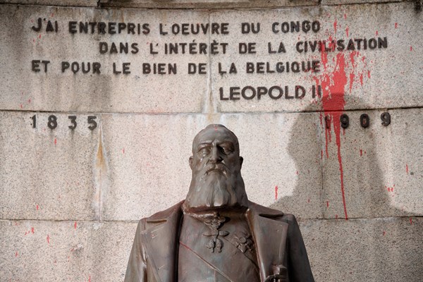 تمثال ليوبولد الثاني عند مفترق طرق في بلجيكا في 2020