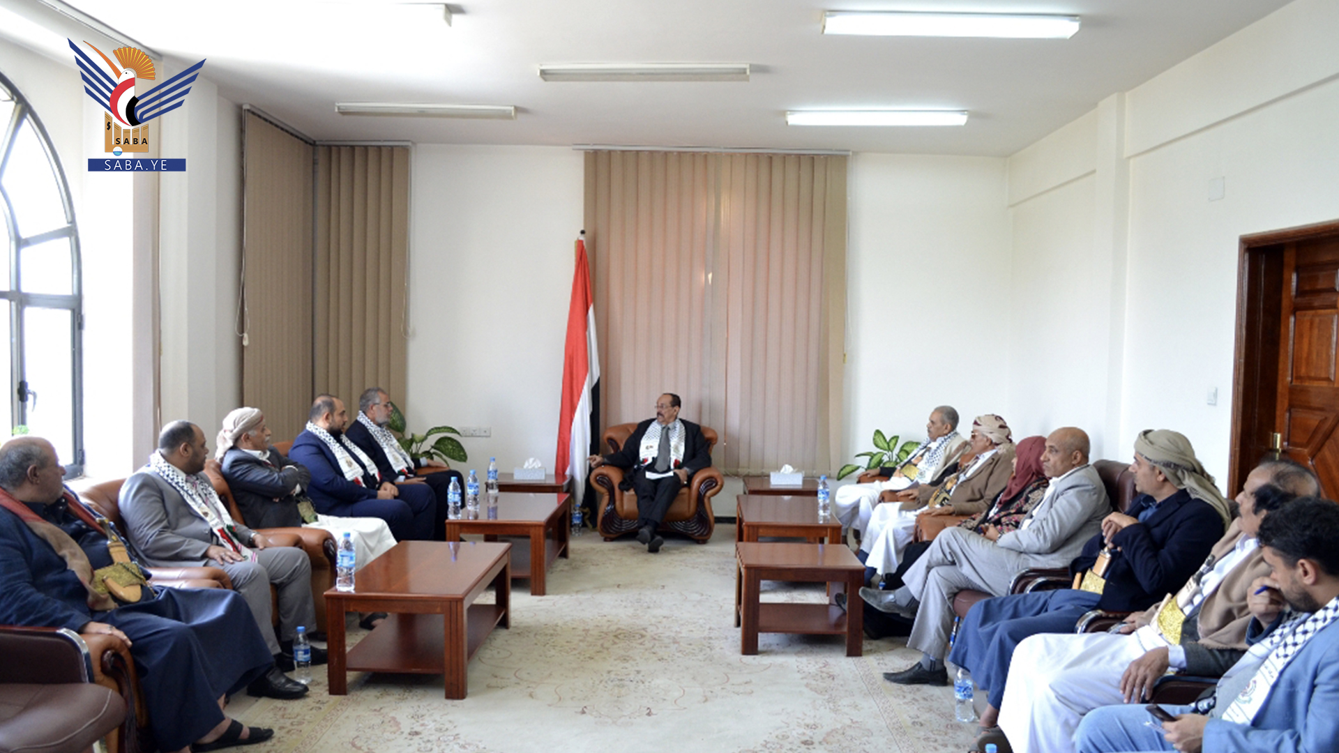 | وأكد رئيس مجلس النواب اليمني، الذي استضاف وفداً من حركة حماس الفلسطينية، أنه على الرغم من كل الترهيب والترهيب الذي يواجهه اليمن من الولايات المتحدة، فإنه سيستمر في دعم فلسطين. |