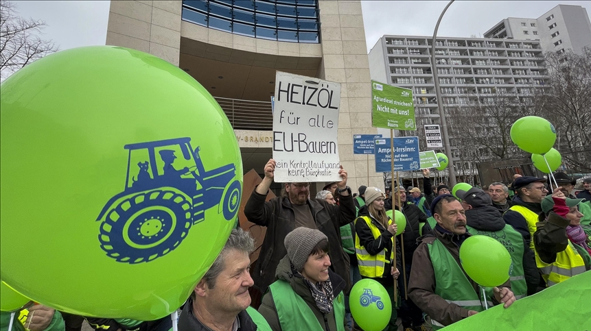 وفقا لوكالة أنباء “الأناضول” نزل المزارعون إلى الطرق السريعة في جميع أنحاء المدينة مع 1500 جرار وآلات زراعية، احتجاجًا على سياسات الحكومة بما في ذلك الضرائب واحتج سانجين على البيروقراطية. أبلغت الشرطة الألمانية عن اضطرابات في حركة المرور والطرق.