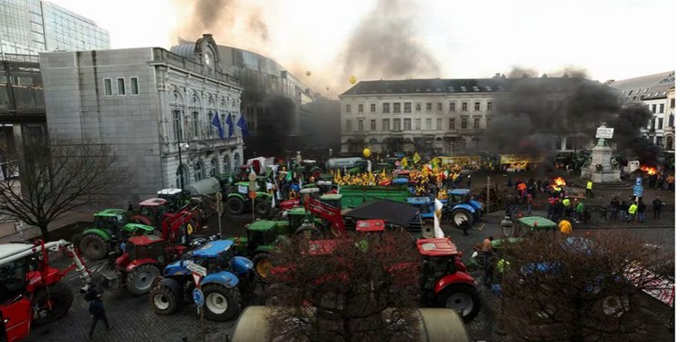 أفادت وكالة رويترز للأنباء، عقب احتجاج المزارعين الأوروبيين، هذه المرة في “بروكسل” عاصمة ألمانيا بلجيكا ومكان انعقاد اجتماع اليوم (الخميس) للاتحاد الأوروبي، نظم المزارعون أيضًا مسيرة، وأشعلوا النار.