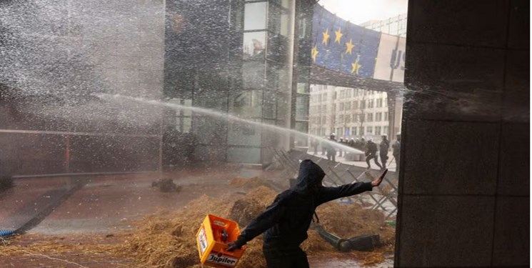 تُظهر الصور المنشورة في وسائل الإعلام الغربية مجموعة من المتظاهرين يزيلون الحواجز أمامهم البرلمان الأوروبي. واستخدمت قوات الأمن الغاز المسيل للدموع وخراطيم المياه لتفريق المزارعين.