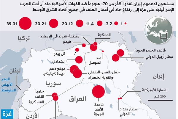 القواعد الأمريكية في المنطقة التي استهدفتها هجمات المقاومة