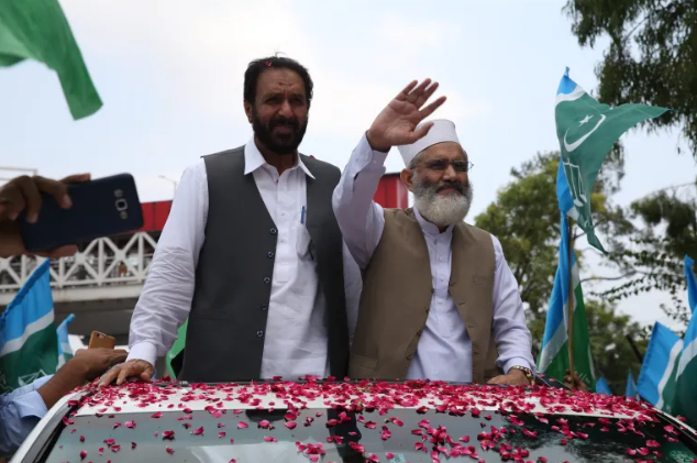 سراج ال- حق في مظاهرة احتجاجية ضد التضخم والبطالة في مدينة روالبندي بالقرب من إسلام آباد