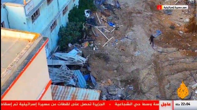 تظهر الصور التي سجلتها هذه الطائرة بدون طيار دخول دبابات الجيش الإسرائيلي إلى مقبرة التوانسة في حي الشجاعية، وكذلك داخل عدة مدارس تم تحصينها.