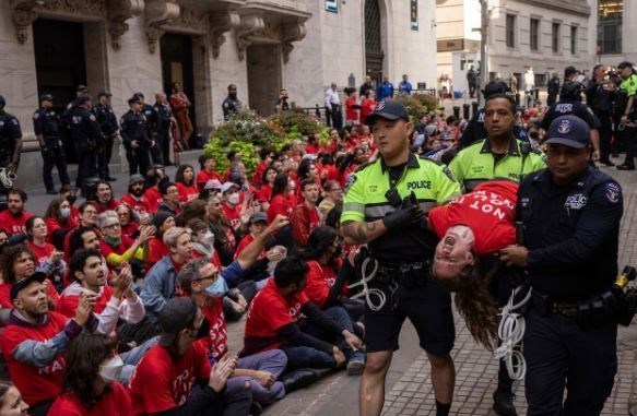 بدأت مجموعة من المتظاهرين على الإبادة الجماعية في غزة، والتي سبقها يهود مناهضون للصهيونية، تظاهرة في نيويورك ودخلت بورصة نيويورك في منطقة مانهاتن بهذه المدينة.