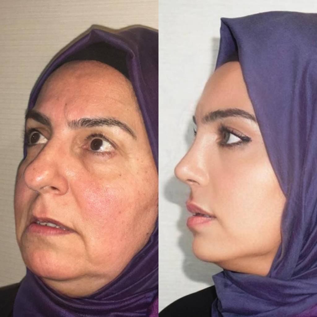 صورة قبل وبعد عملية تجميل الأنف في إيران تظهر تحسين شكل الأنف.