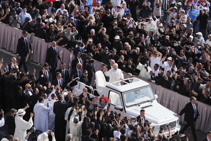 تجول «ليو الرابع عشر» بسيارة البابا الخاصة في ساحة القديس بطرس+ صورة