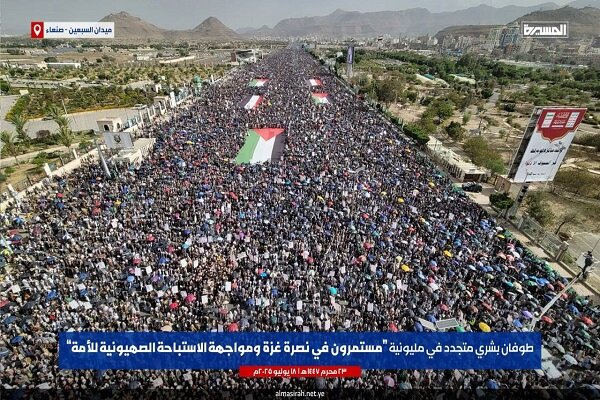وفقًا لتقرير القسم العربي في “وكالة ويبانغاه للأنباء” نقلاً عن “وكالة مهر للأنباء”، خرج آلاف اليمنيين في مسيرات واسعة بصنعاء ومحافظات أخرى، مؤكدين مجددًا وقوفهم مع الشعب الفلسطيني وأهالي غزة المظلومين.