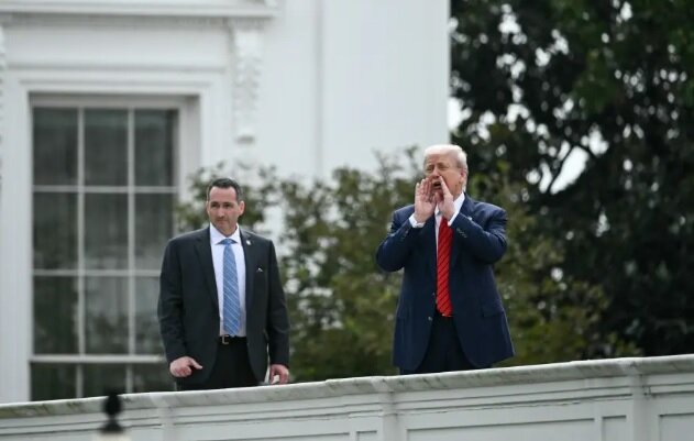 الرئيس الأمريكي على سطح البيت الأبيض يجيب على سؤال صحفي حول سبب تواجده قائلاً: أريد وضع صواريخ نووية هنا!