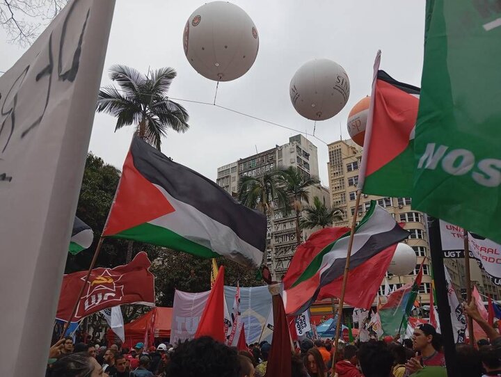 المتظاهرون في مدينة ساو باولو حملوا أعلام فلسطين وأكدوا تضامنهم مع الشعب الفلسطيني.