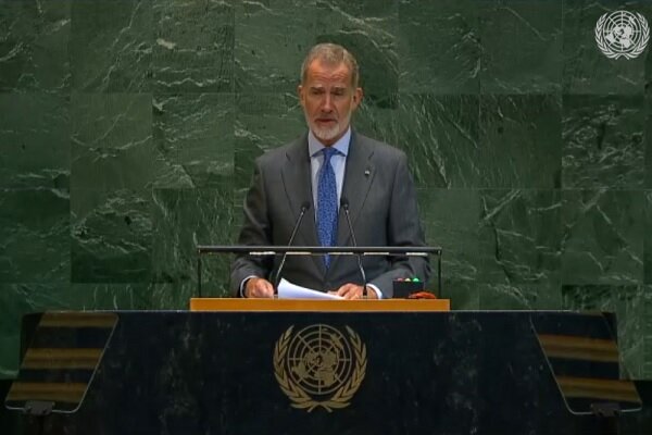 قالت وكالة ويبانقاه للأنباء في قسمها العربي، نقلاً عن وكالة مهر للأنباء وعبر وكالة الجزيرة، إن «فيليب السادس» ملك إسبانيا أعلن اليوم الأربعاء خلال كلمته في الدورة الثمانين للجمعية العامة للأمم المتحدة أنه لن يصمت أمام الأعمال البشعة التي تحدث في غزة. لا يمكننا السكوت أو تغميض أعيننا أمام تدمير المدارس والمستشفيات وقتل وتجويع المدنيين هناك. نحن نطالب بوقف المجازر الجارية في قطاع غزة. ونطالب إسرائيل بوقف انتهاكات حقوق الإنسان. يجب على المجتمع الدولي أن يتحمل مسؤولياته لتحقيق حل الدولتين والسلام العادل.اعترافنا بدولة فلسطين يجب أن يساعد على تحقيق السلام الإقليمي.سنواصل دعم الجهود الرامية إلى تحقيق سلام عادل ومستدام قائم على مبادئ القانون الدولي.