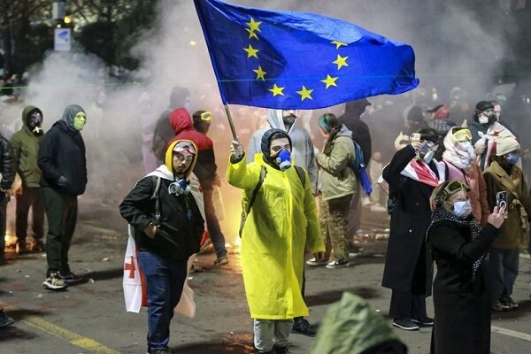 أفادت وكالة ويبانقاه للأنباء نقلاً عن وكالة مهر للأنباء وعن وكالة سبوتنيك، أن احتجاجات المعارضين الموالين للغرب في جورجيا اليوم السبت تصاعدت إلى أعمال عنف. حاول المحتجون في تبليسي، عاصمة البلاد، اقتحام مقر رئاسة الجمهورية عبر تجاوز الحواجز الحديدية.