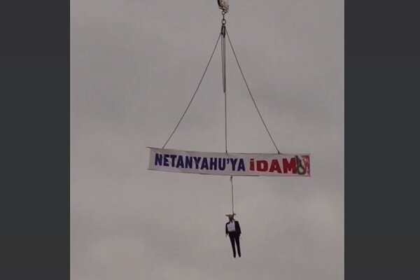 وأظهرت الصور المرسلة من الوكالة المذكورة لوحة كتب عليها «إعدام لنتنياهو» ونموذج رئيس وزراء المحتلين الصهیونیین بنيامين نتنياهو على رافعة داخل ورشة بناء بمدينة طرابزون التركية.