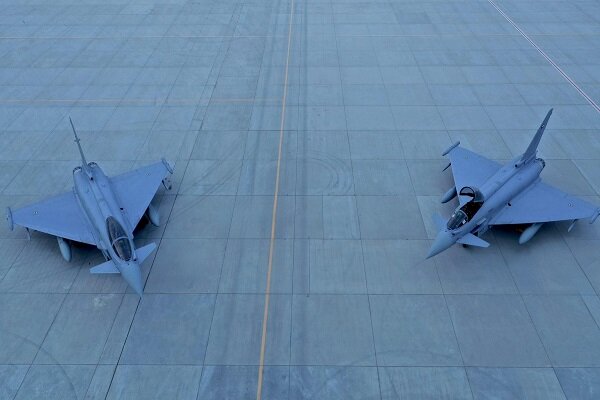 مصادر كويتية تُعلن عن‍ هبوط مقاتلتين‌ من طراز يوروفايتر ⁢تايفون في قاعدة سالم الصباح الجوية بالكويت.
