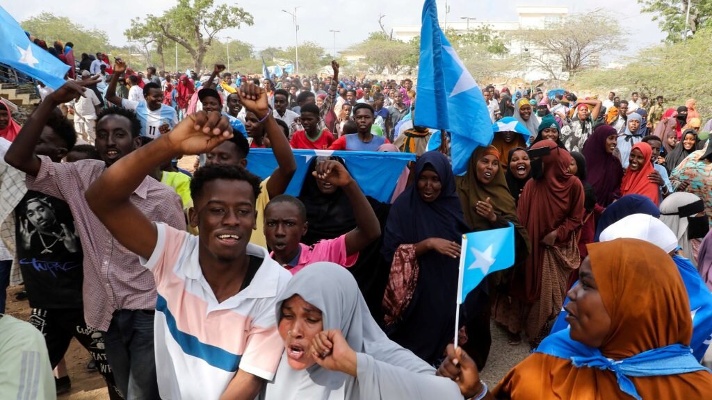 خرج آلاف الصوماليين في مسيرة احتجاجية بالعاصمة مقديشو، معبرين عن رفضهم القاطع للاعتراف الإسرائيلي بإقليم صوماليلاند، مؤكدين على وحدة التراب الصومالي.