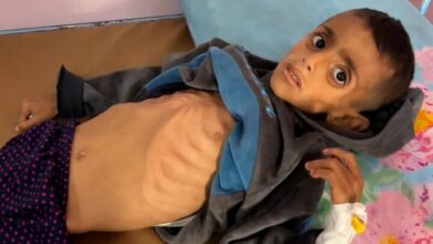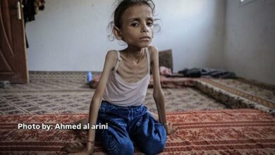 طفلة فلسطينية من غزة تبلغ من العمر تسع سنوات تعجز عن المشي بسبب سوء التغذية الحاد