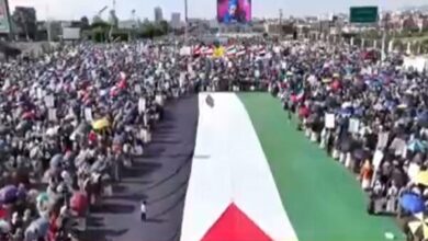 مسيرة يمنية تحت شعار “تهنئة بانتصار إيران والوقوف مع غزة حتى النصر