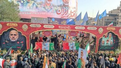 تغطية إعلامية عربية مكثفة لمراسم تشييع شهداء طهران مع صور وفيديو
