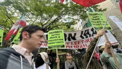 نشطاء مناهضون للحرب وإيرانيون مقيمون في نيويورك نددوا بمجازر شعب غزة وطالبوا بوقف السياسات الأمريكية المعادية لإيران