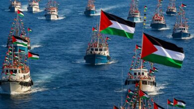 سفينة عمر مختار من أسطول صمود في العاصمة الليبية تستعد للتوجه إلى غزة للمشاركة في حملة رفع الحصار عنها